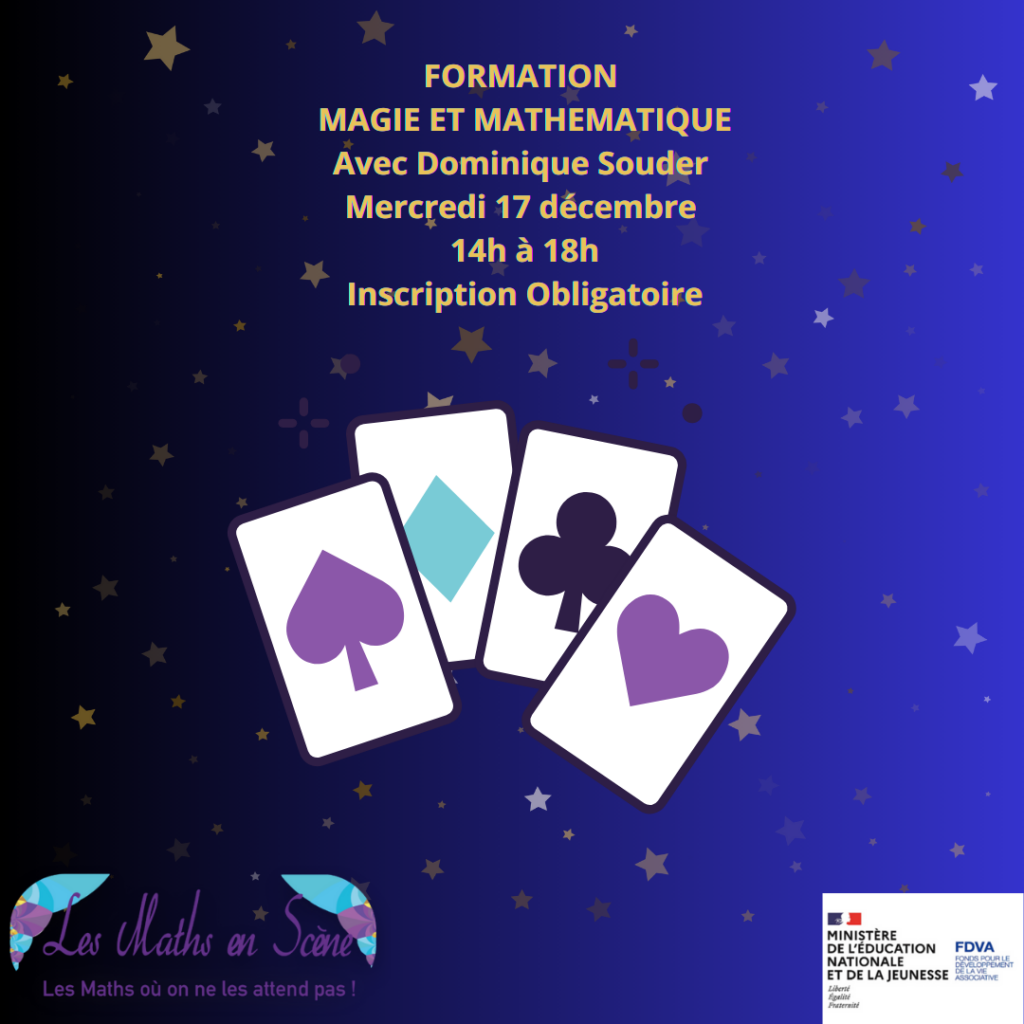 Le mercredi 17 décembre, de 14h à 18h, nous aurons le plaisir d’accueillir Dominique Souder pour une formation exceptionnelle autour des liens entre mathématiques et magie.